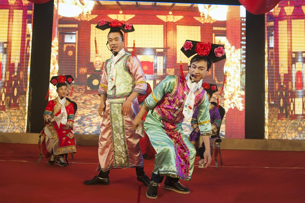 整場匯演在一工廠表演的開場鼓舞《歡聚一堂》中拉開了帷幕,喜慶歡騰的氣氛和鏗鏘有力的鑼鼓聲頓時溢滿全場,激揚的音樂和鑼鼓聲展示了公司員工昂揚向上的精神風貌;歡快可愛的舞蹈《金雞拜年》將本一化工員工的熱情與奔放盡情點燃;二工廠帶來的穿越小品《甄嬛后傳》極具喜感,夸張的表演以及不時抖出的各種“包袱”,看得場下觀眾笑聲連連。財務部的帥哥美女們帶來的經典影視歌曲串燒,曲曲動聽,首首懷舊,霎那間時光仿佛又回到了從前。研發部的相聲《說魔逗唱》,將魔術表演與傳統相聲有機結合,給觀眾帶來耳目一新的感覺。