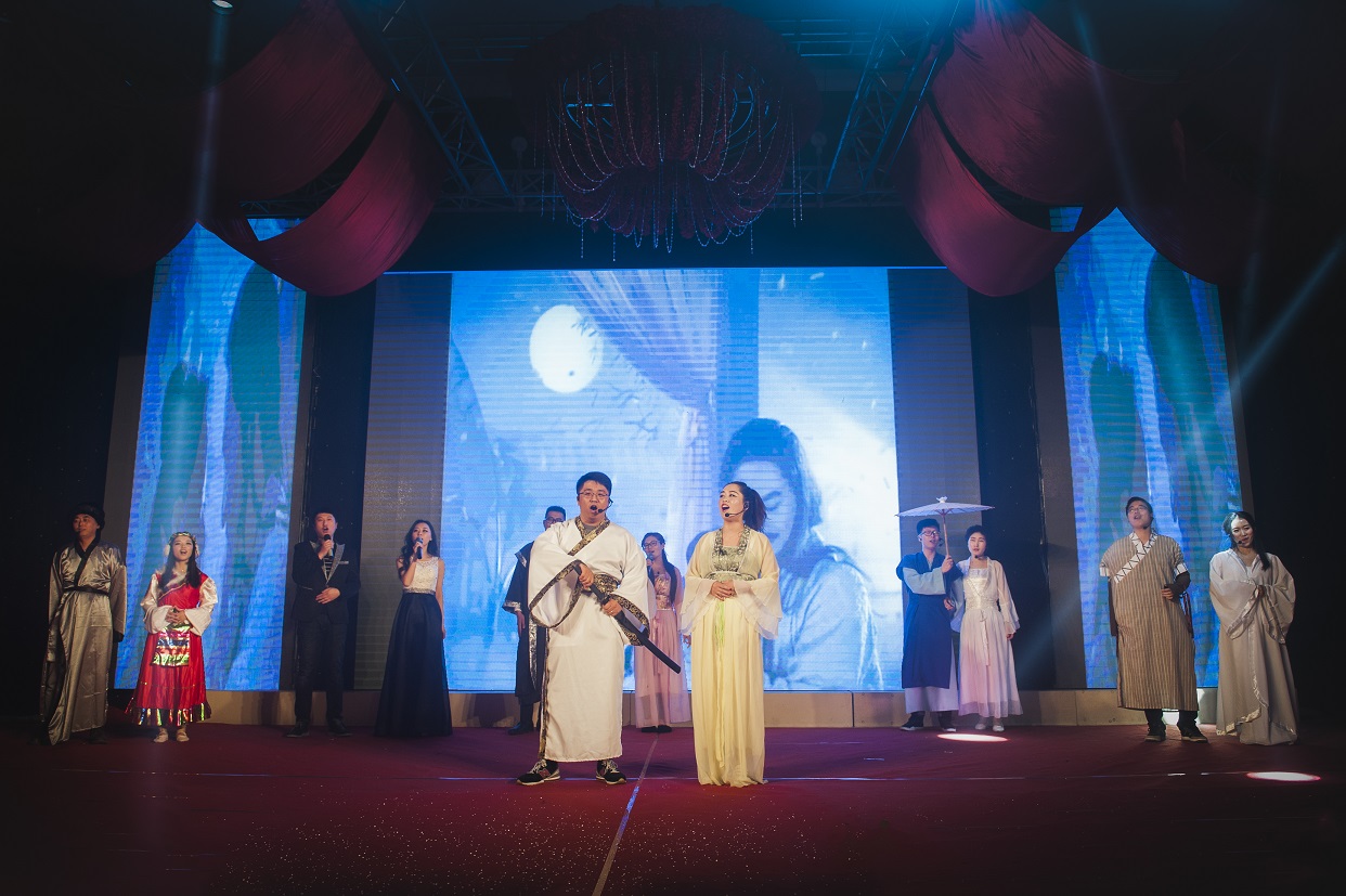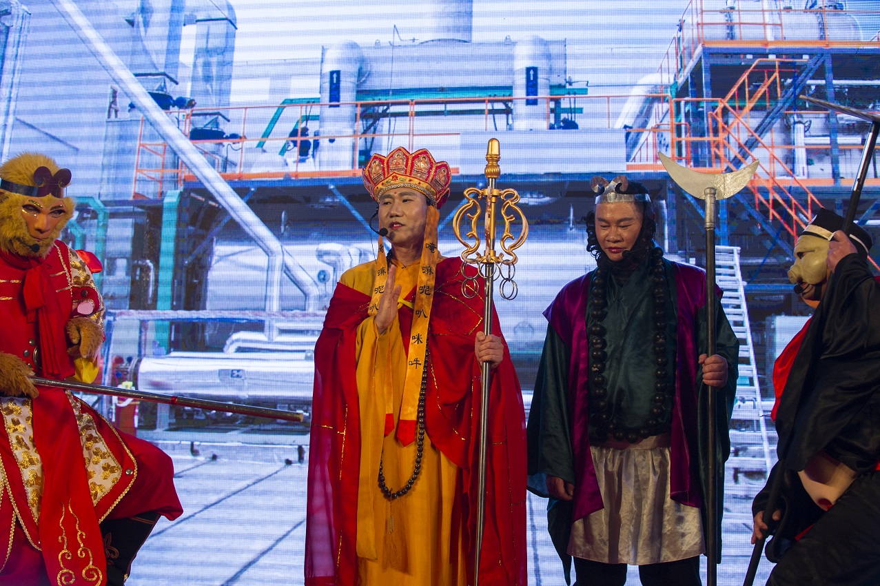 技術質量部的美女們傾情演繹的彝族舞蹈《七月火把節》,以其火紅艷麗的服飾,歡快優美的旋律和舞姿,讓觀眾感受到節日里濃濃的喜慶與歡樂。最吸引觀眾眼球的要數生產計劃部的舞臺劇《西游記》,其以獨特的人物造型,精心設計的搞笑橋段,引得現場觀眾捧腹大笑,掌聲不斷。特別是那翩然如彩蝶般飄然而下的嫦娥仙子出場時,更是轟動全場。此外,銷售部歌舞《排練現場》、渡邊副總演唱的歌曲《一生有你》等節目也都精彩紛呈,深深吸引著現場的觀眾。