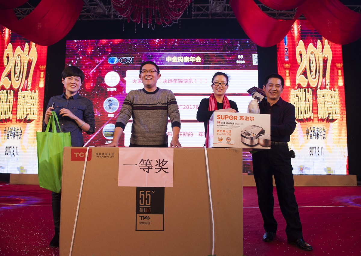 精彩節目演出的同時還穿插了激動人心的抽獎環節和微信搶紅包活動,一輪輪活動將年會的氣氛不斷推向高潮。在酒會活動中,櫻井董事長、徐總經理攜公司高層領導向員工一一敬酒,并送上紅包,感謝各位員工為公司發展所付出的努力。新年伊始,讓我們帶著對春的向往和對公司的祝福,凝聚力量,整裝待發,共同攜手邁入2017年的全新里程!